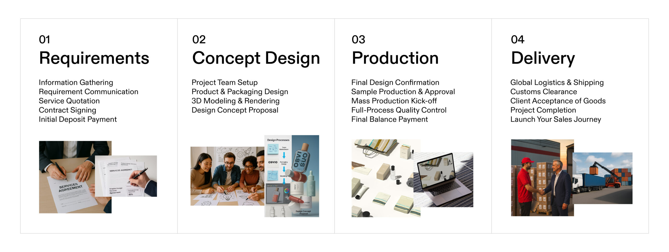 You dream up the vision; we handle the complex journey from design to delivery. Let’s work together to make your brand a global reality.